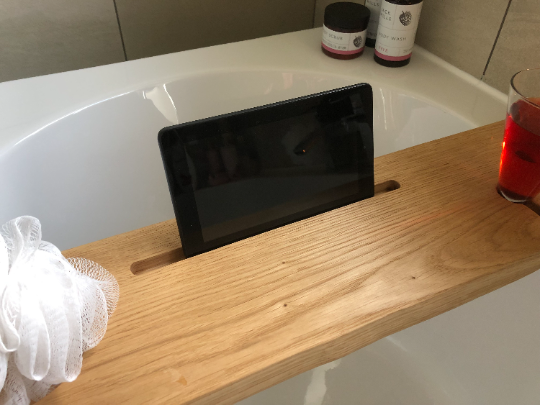 This beautiful bath caddy is made from solid oak leaving the natural waney edge, we work with the natural character of the wood making each one different with natural knots, splits and edges, its then hand sanded to 240 grit giving it a smooth polished finish.