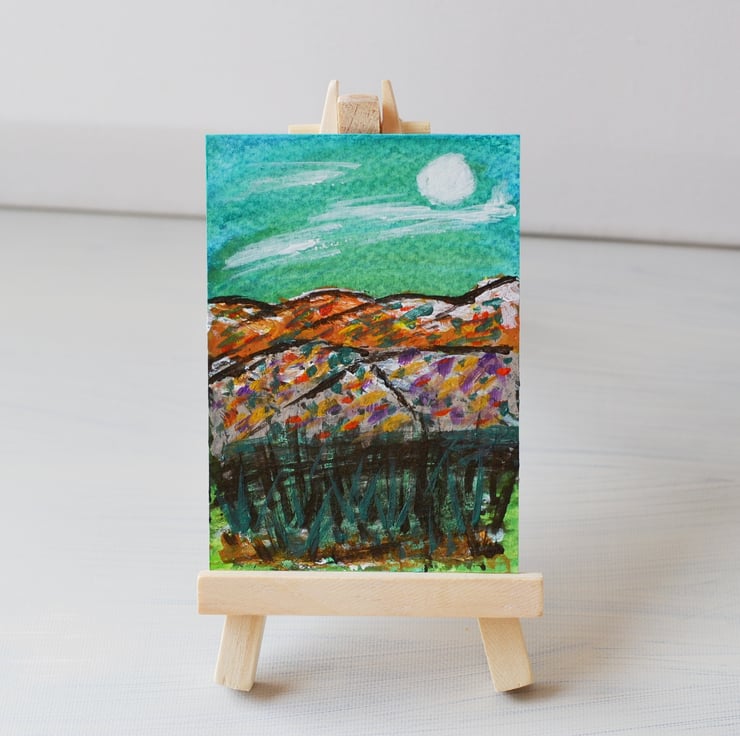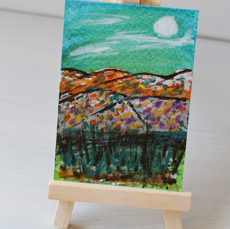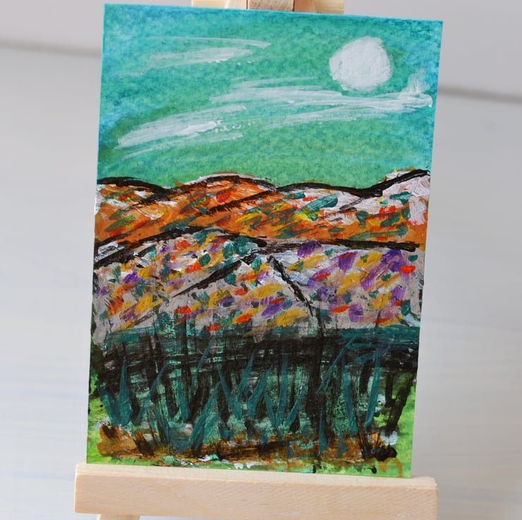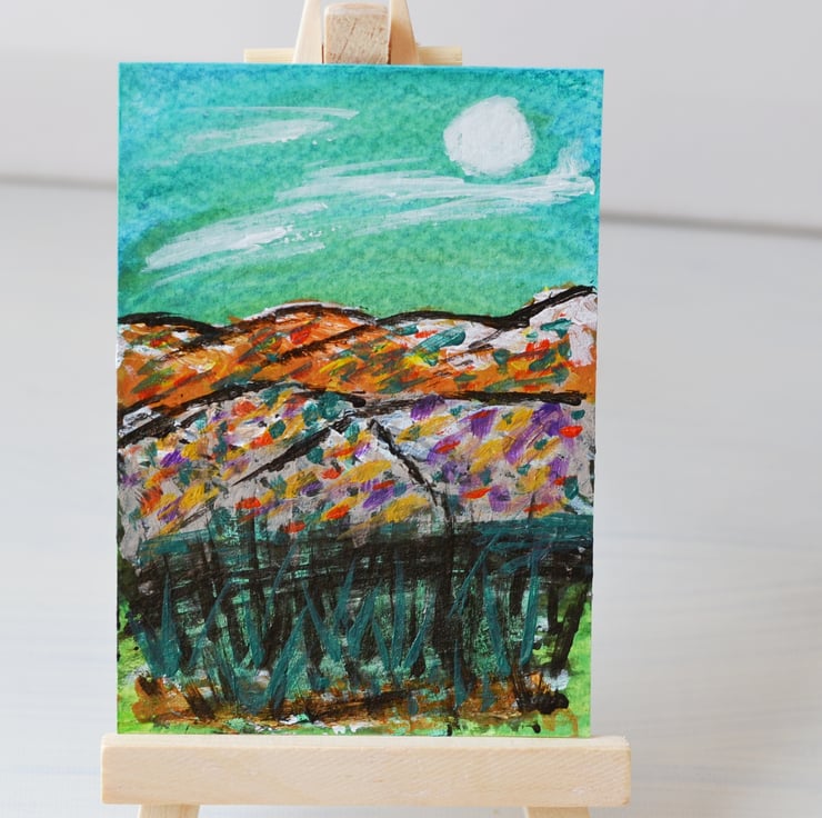 Aceo acrylic and watercolour painting . Painted on quality watercolour paper. Painted using quality acrylic and watercolour paints. Size is 3.5" x 2.5" - Doesn't take as much wall space as a more traditional painting. I can put it into an ivory mount for £1.50. Keep out of direct sunlight due to fading and away from water.