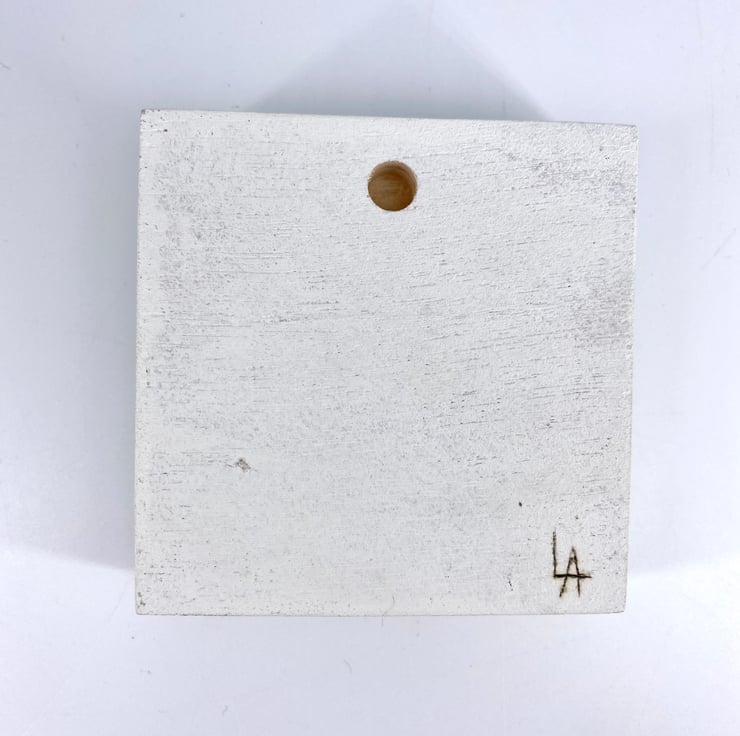 The artwork measures 7 x 7cm and the wood is 10 x 10cm.