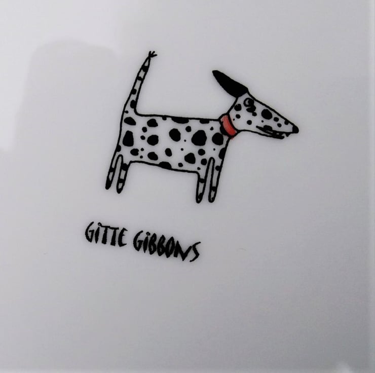 This is a lovely pair of coup style dinner plates, that is to say, they are flat with lip around the edge. They are 27 centimetres (just over ten and a half inches in diameter) They are hand decorated as part of the 'Sylvester' range designed by Gitte Gibbons at the Powerkraut Lounge studio.