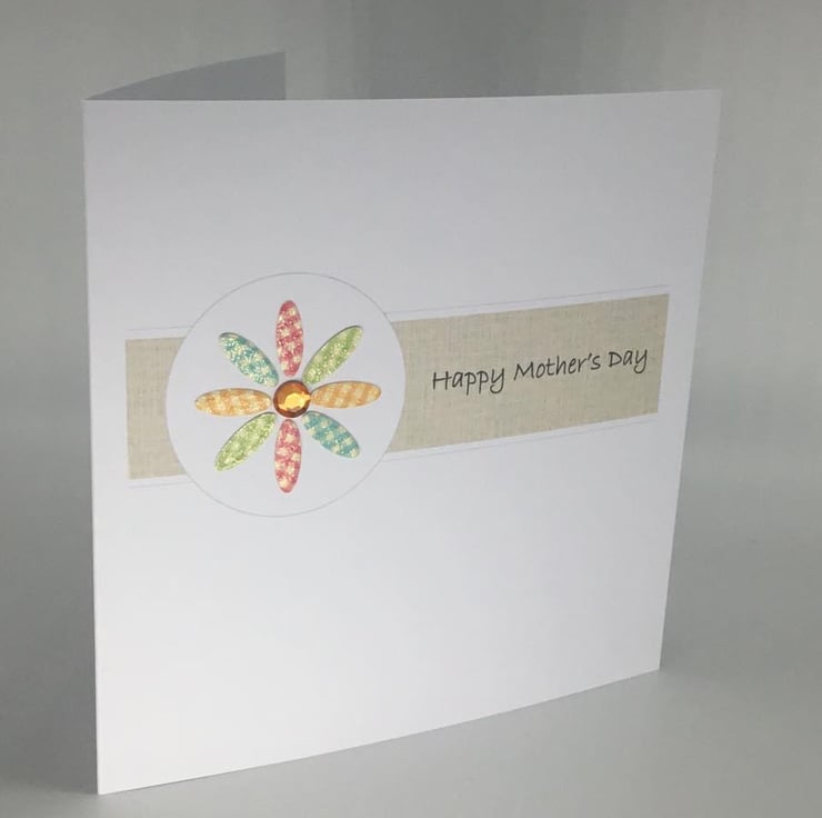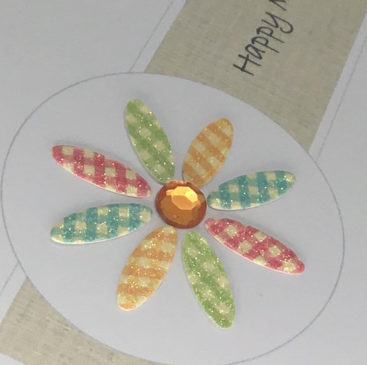 A handmade Mother’s Day card, incorporating a gingham flower design.