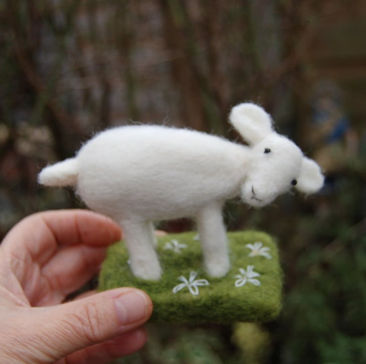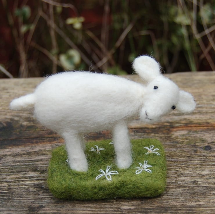 Lamb amongst the daisies. A lovely unusual lamb for your Easter display. Hand made from wool fibres and decorated with hand stitched daisies.