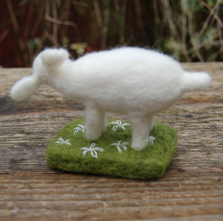 Needle felted white sheep made from rare breed Lonk British sheep wool fibres.