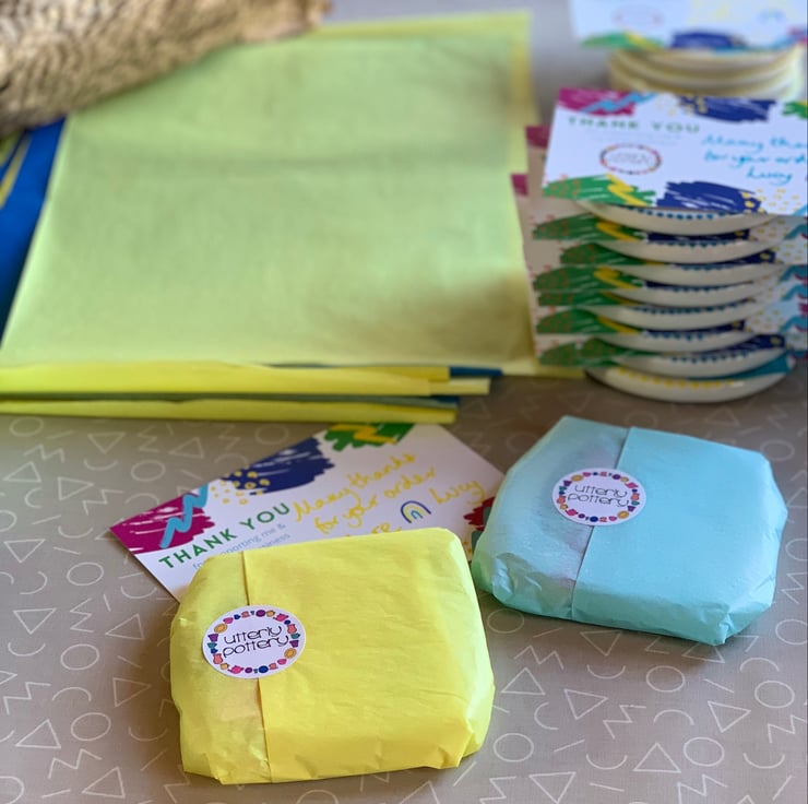 Where possible I reuse and recycle plastic bubble wrap as I find it offers the best protection for my handmade and handpainted ceramics.