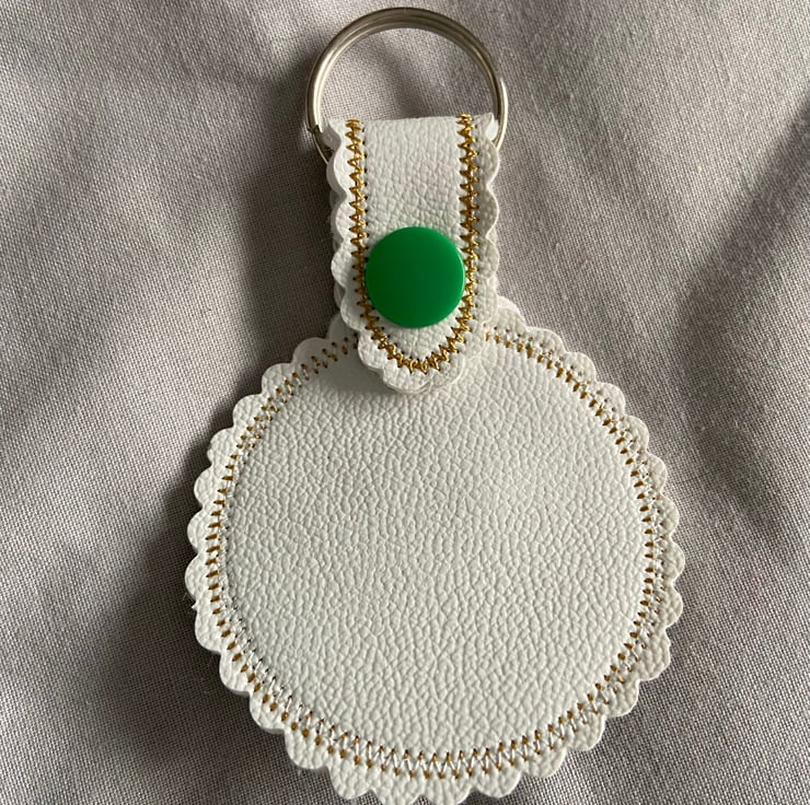 This cute frog keyring has been embroidered onto faux leather