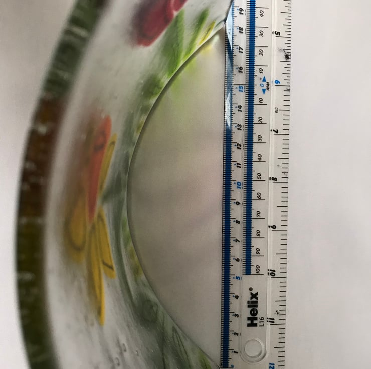 - Hand-cut glass with hand-painted details, kiln-fused for durability
