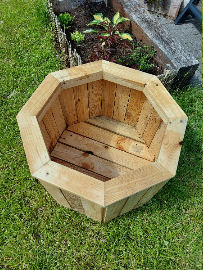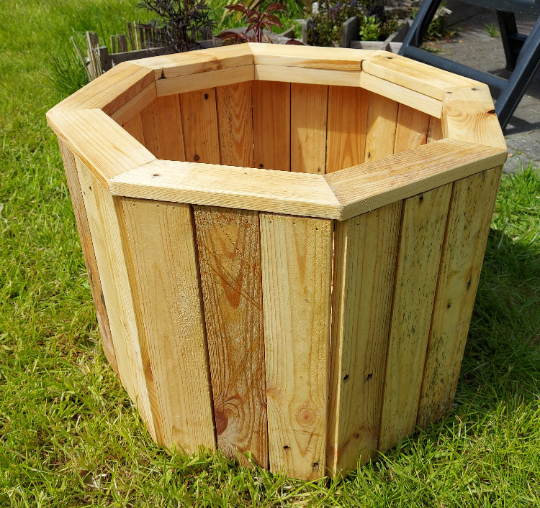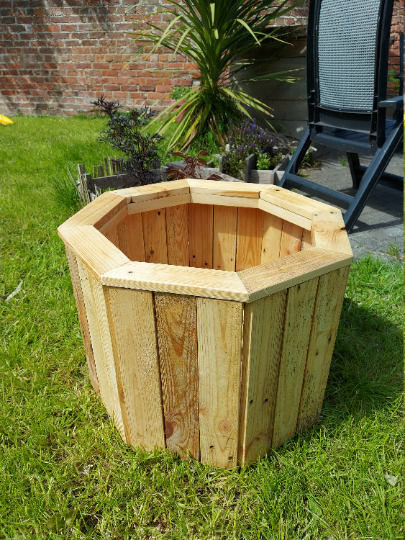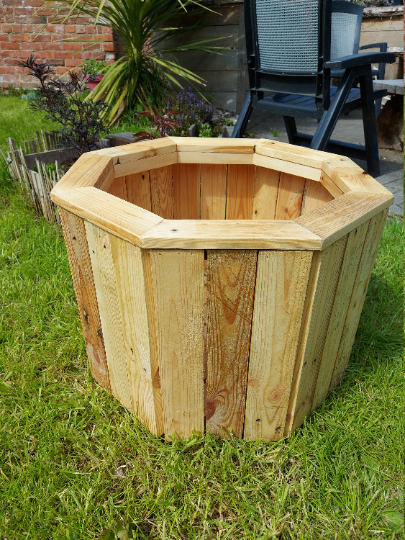 Beautiful rustic planters with a hexagon shape made from solid reclaimed timber full of natural character making each one different with knots, splits and a range of colours, while been strong enough to withstand the elements, it stands on four feet and has gaps at the bottom to allow for drainage