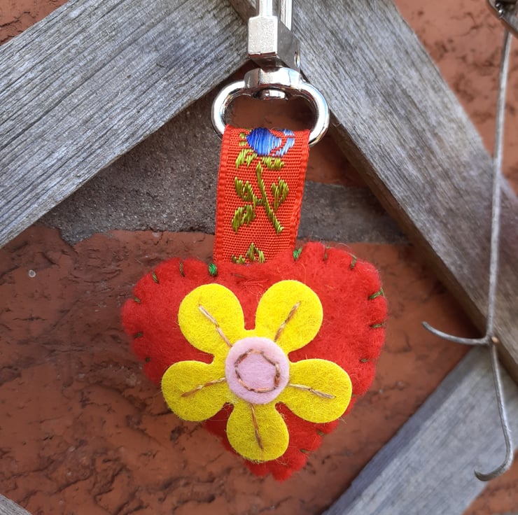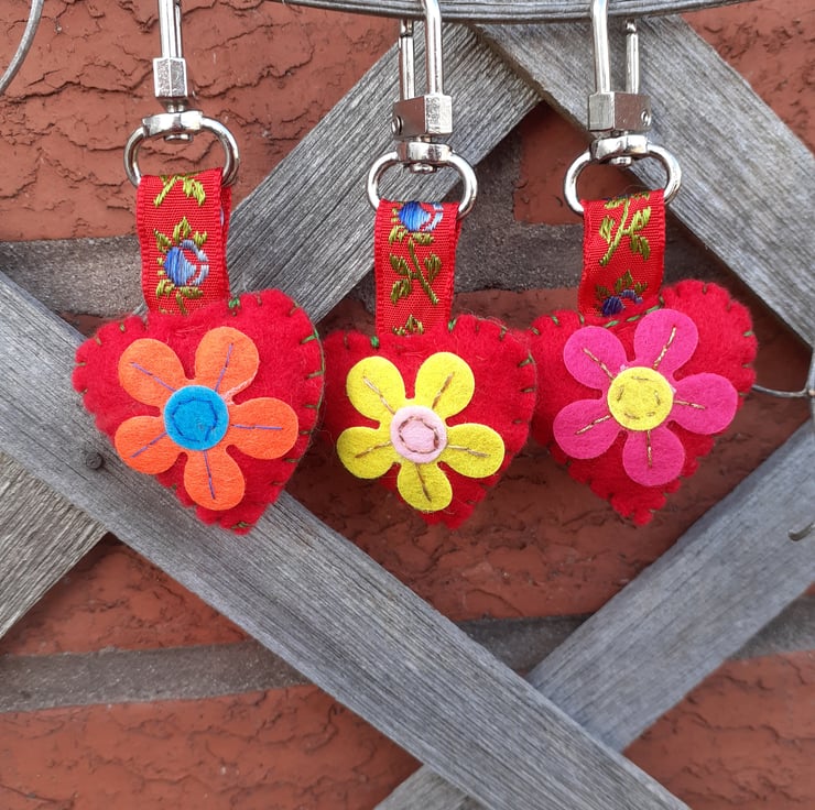 Made from felt these little hearts are slightly padded with wool I received in a food gift box one Christmas. They are hand cut and hand sewn.