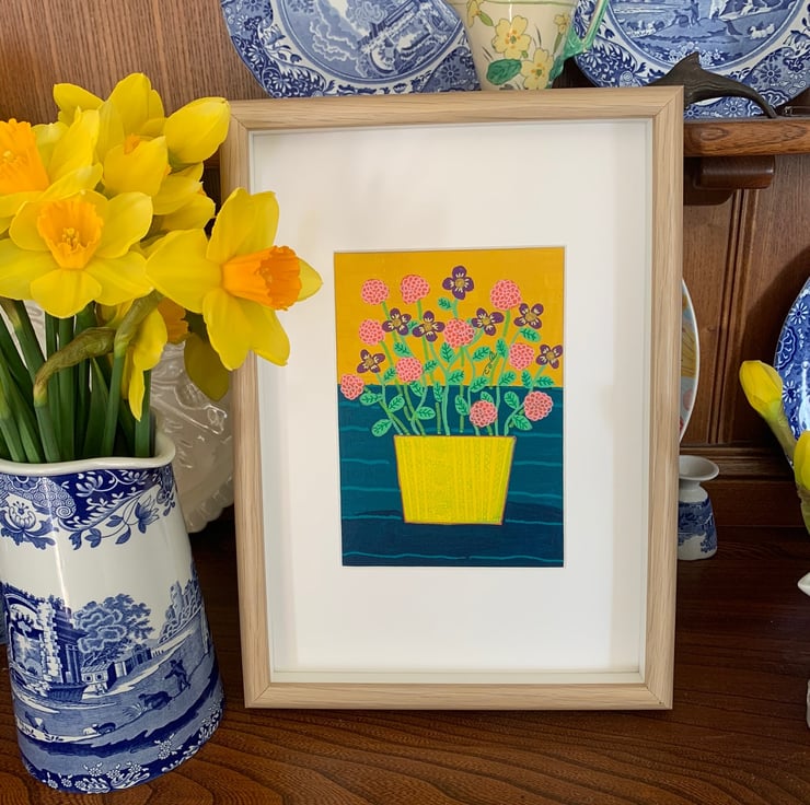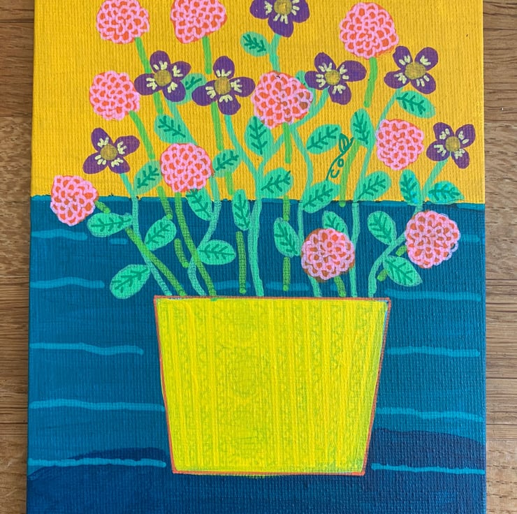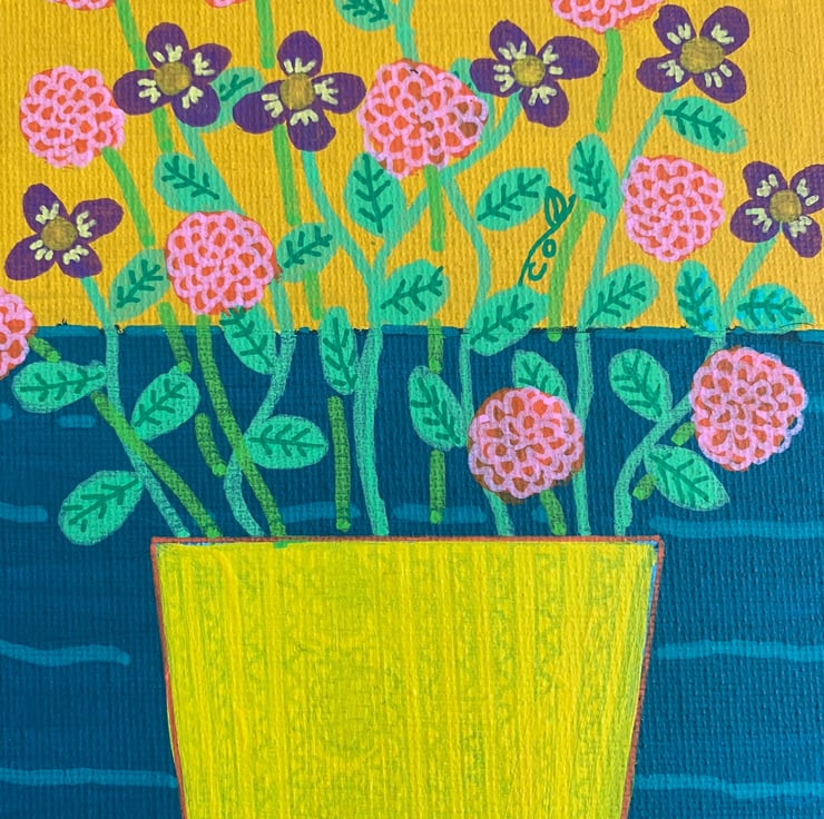 The insperation for this little artwork was to create a little bit of joy. It was a grey day raining cats and dogs and I was itching to be out in the garden. To cheer myself up I decided to make summer come early.