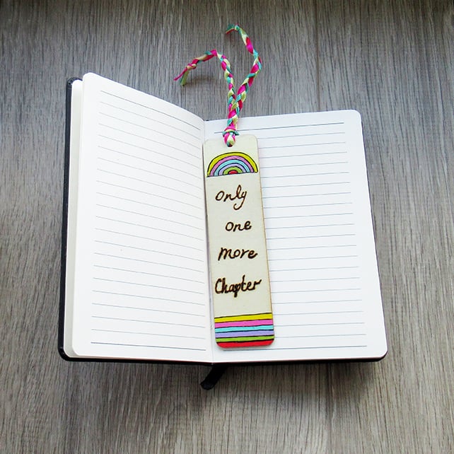 Colourful hand painted wooden bookmark with details burned using pyrography techniques. Great item for the avid reader who is enjoying a favourite book or new bestseller.