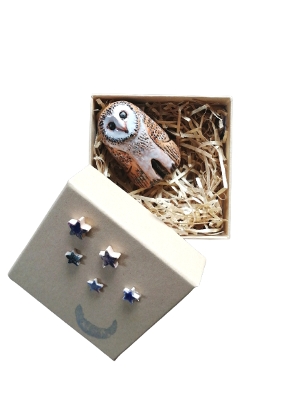 Each one comes in its own robust paper fibre box, decorated with ceramic leaves and hand printed silver moon.