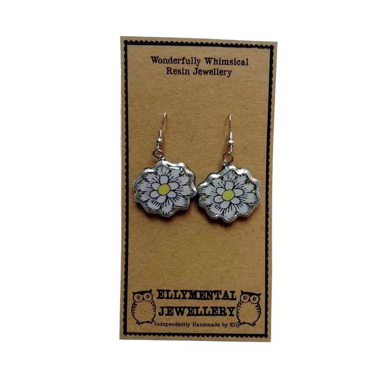 Retro Yellow and White whimsical Statement Flower Earrings by EllyMental