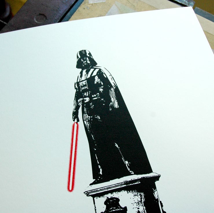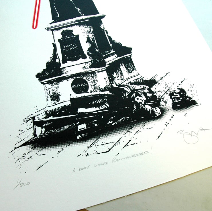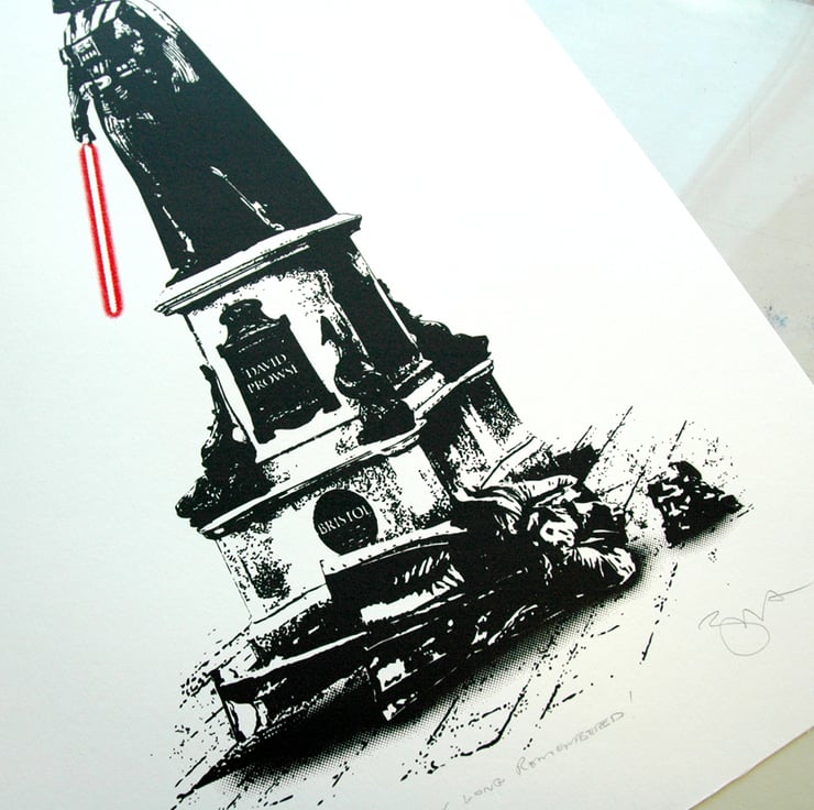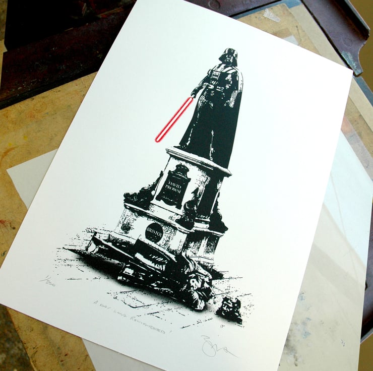 I’m not usually one for social commentary but I was inspired by Banksy’s illustration of the Edward Colton plinth design and I remembered that the original actor the played Darth Vader, David Prowse was born in Bristol!