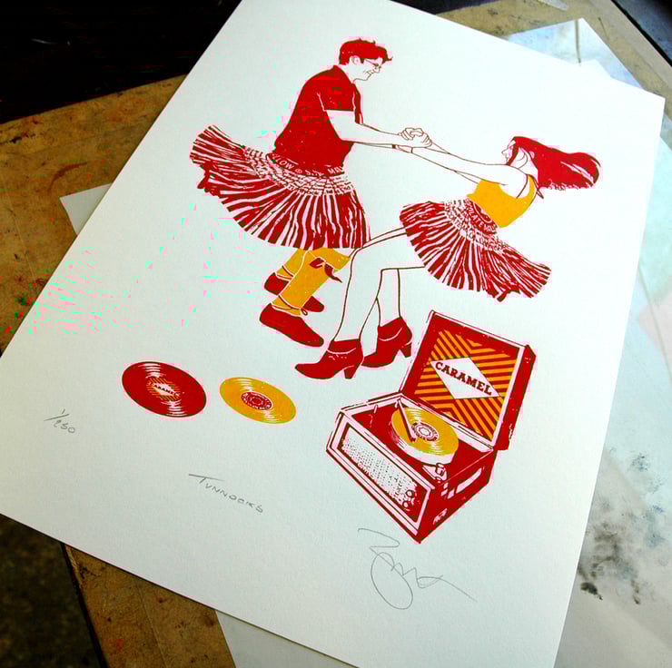 This 2 colour hand pulled screen print measures 30cm x 42cm, 11.81” x 16.53” (approx) and is printed on 315gsm art stock. Each print is signed & numbered and is strictly limited to an edition of only 250 so once they’re gone they’re gone.