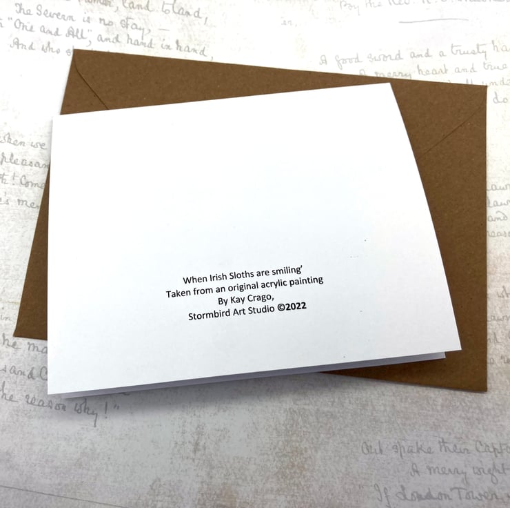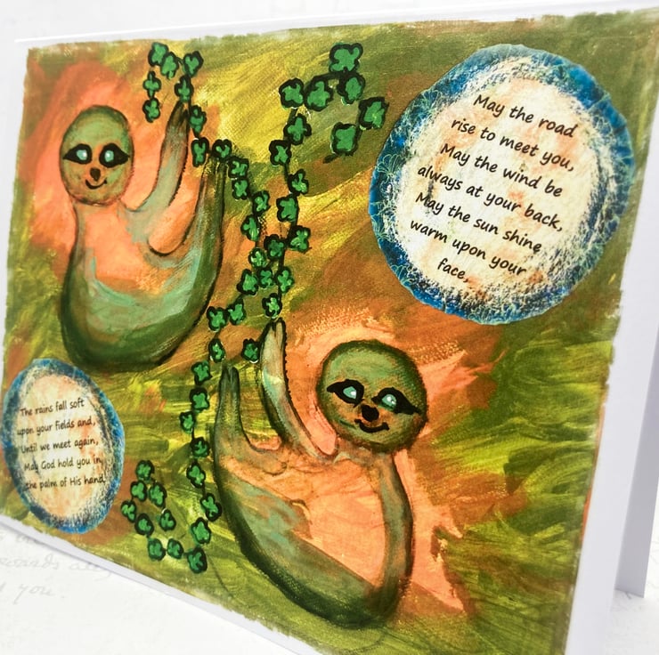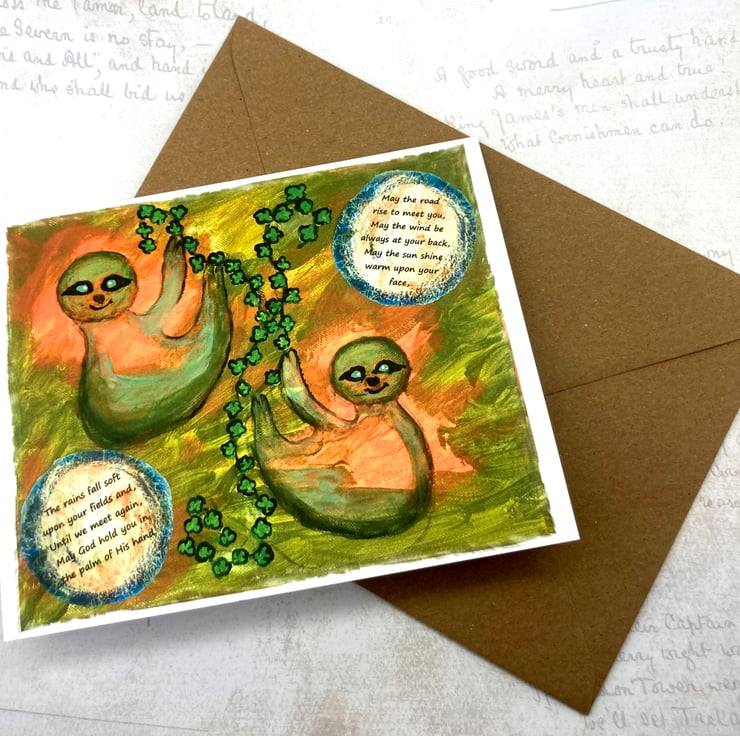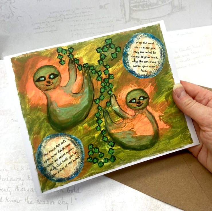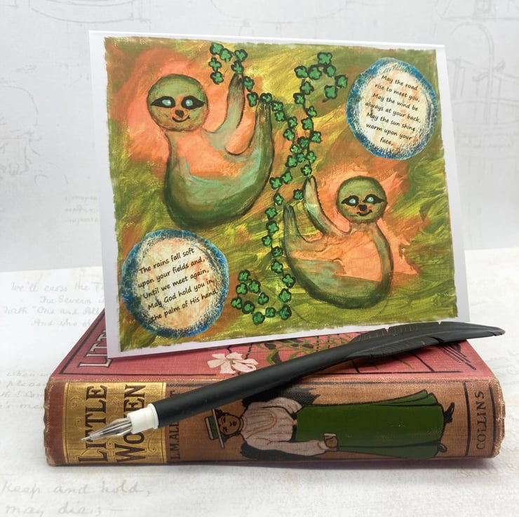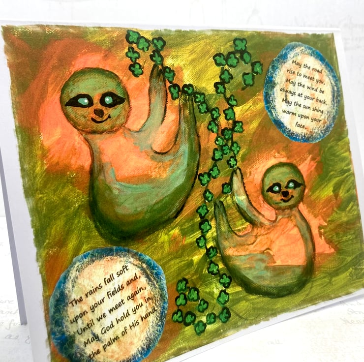 These two Sloths are wishing you the luck of the Irish, in this greetings card, taken from an original mixed media artwork on canvas.