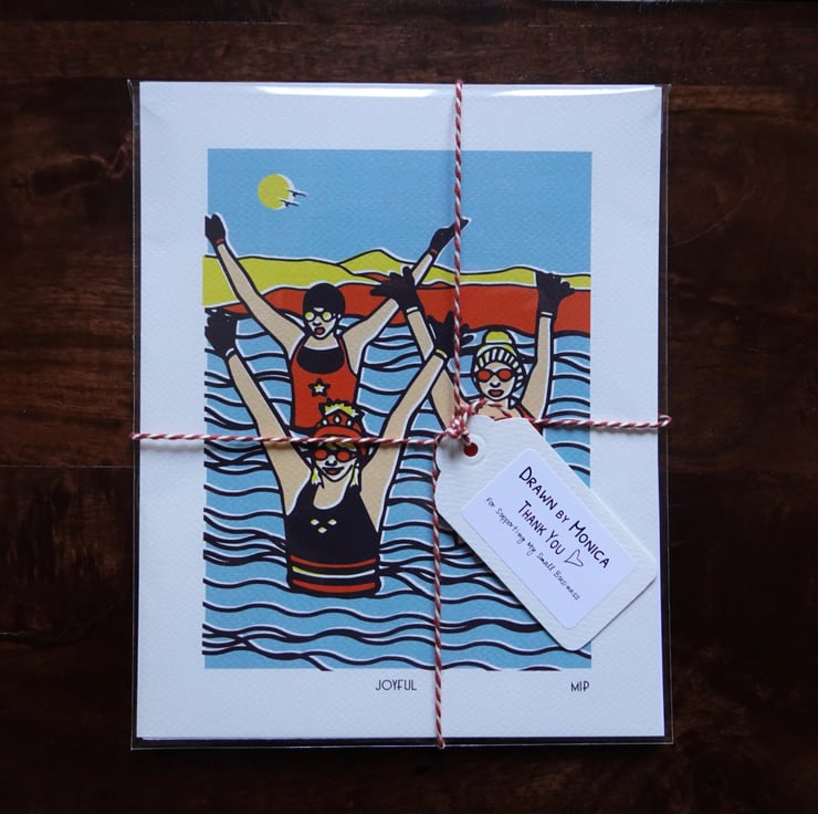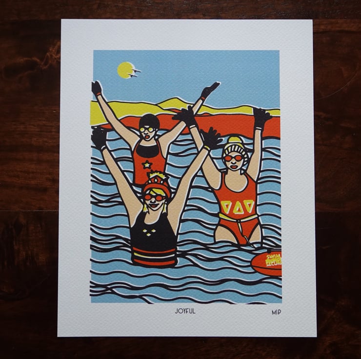 These art prints are inspired not only by my own enjoyment, but also by my observing the braver swimmers who venture forth without wetsuits.