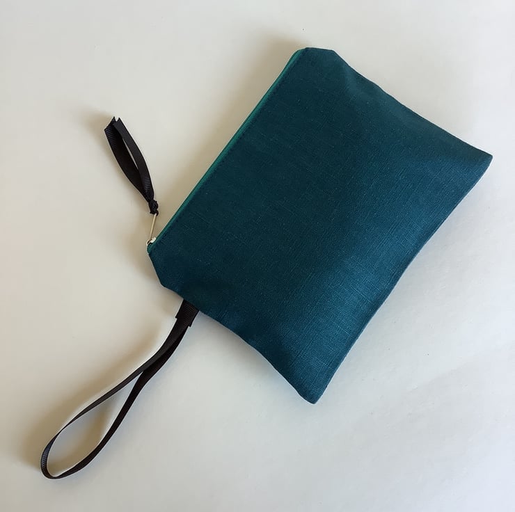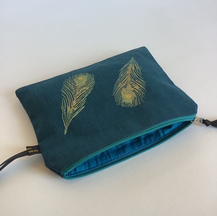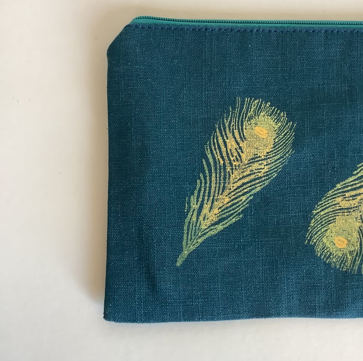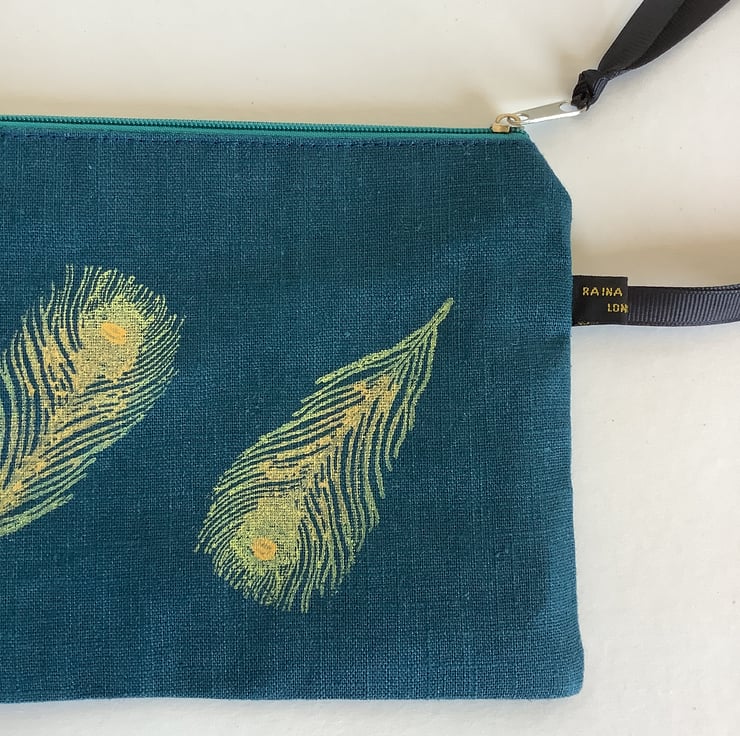 These stylish hand printed pouches made in petrol blue naturally sourced eco-friendly 100% linen are perfect for keeping all your daily essentials like makeup, sunglasses, phone etc safely stored in one place. Small enough to fit in your handbag they also makes a lovely handmade gift or can also be used as a pencil case.