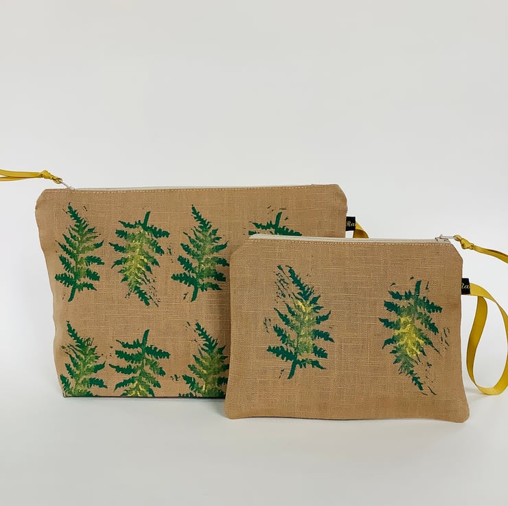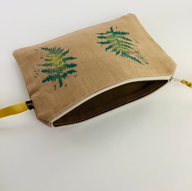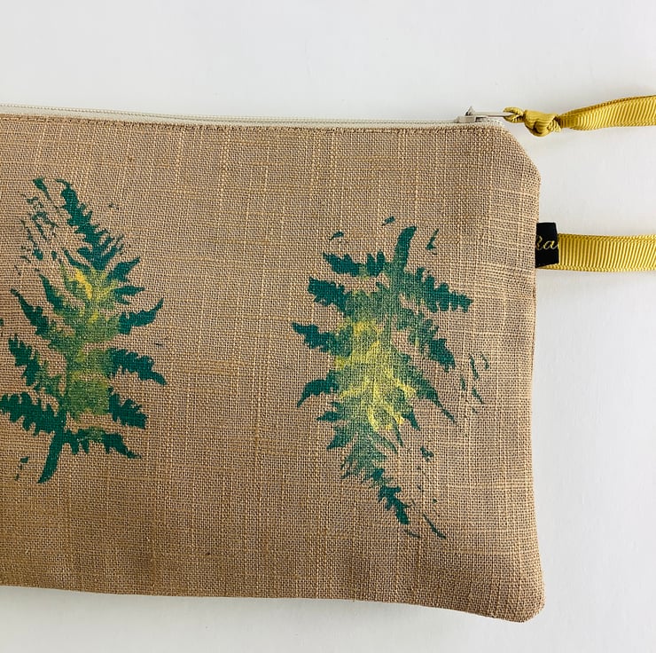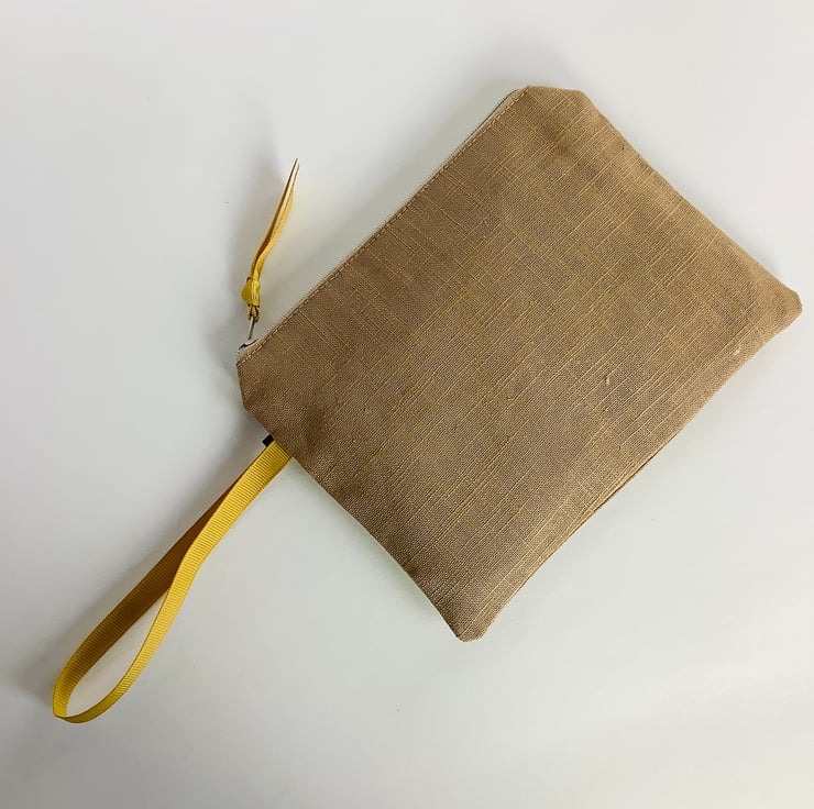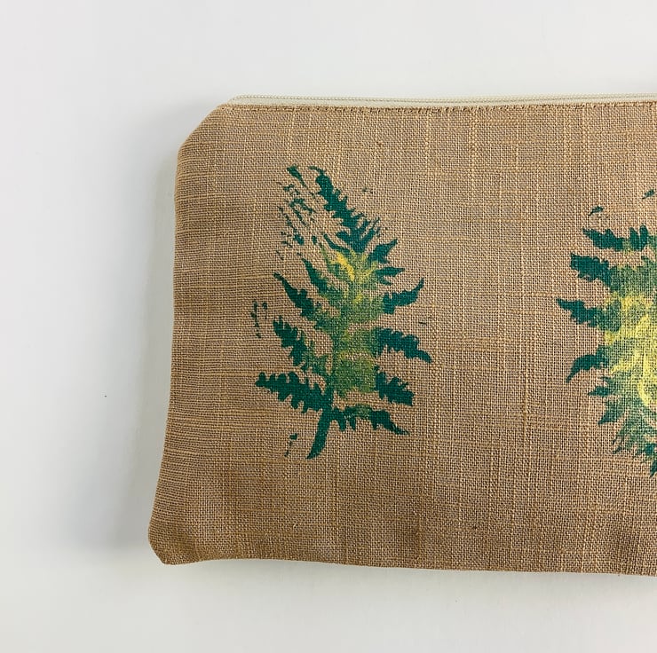 These stylish hand printed pouches made in camel naturally sourced eco-friendly 100% linen are perfect for keeping all your daily essentials like makeup, sunglasses, phone etc safely stored in one place. Small enough to fit in your handbag they also makes a lovely handmade gift or can also be used as a pencil case.
