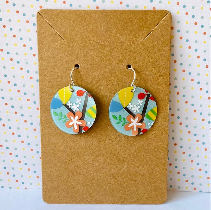 These 22mm wide floral circles have been hand cut from an expired Starbucks plastic gift card. They feature a pretty multicoloured flower design with a lovely summer vibe. A great gift for the eco conscious!