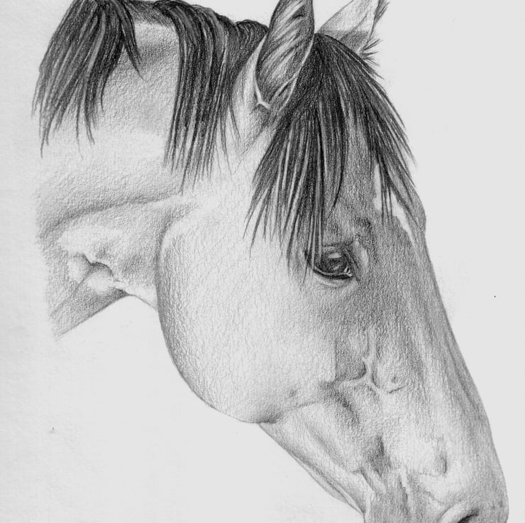 The size of the actual drawing will be approximately A4 depending on the shape of the animal and drawn on A3 acid free heavyweight paper to allow for framing. Portraits are unframed and unmounted and my price is for head & neck only and a single animal