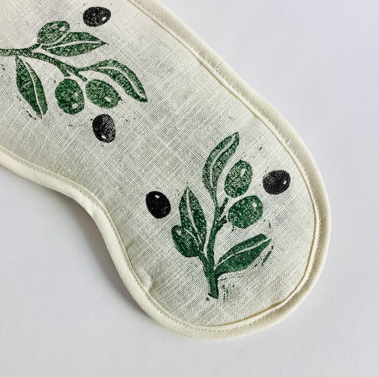 Mediterranean Olives motif featured on the eye mask was inspired by the olive grows of Croatian islands, azure crystal clear sea, lazing around on a rock under the sunny blue sky listening to the song of crickets and taking in the salty smell of fresh sea air mixed with the smell of pines coming from the woods behind….