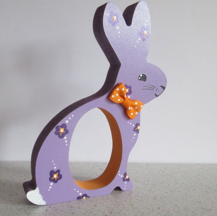 One side of the bunny is decoratively painted, the other side is painted in just the base colour.