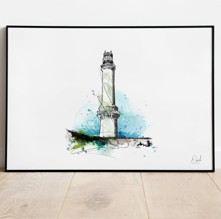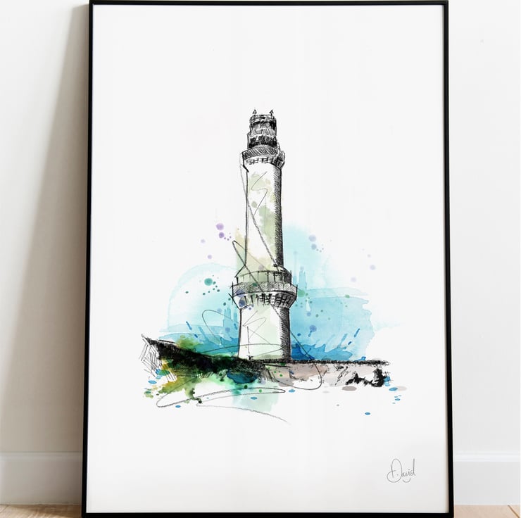 Originally created in pencil, watercolour paint and pen. This illustration of Girdle Ness Lighthouse in Aberdeen was created as part of my 'Cities' series of Illustrations, which are all available on and my website, david-marston.com.