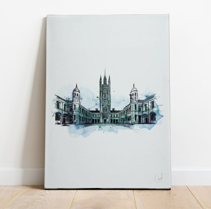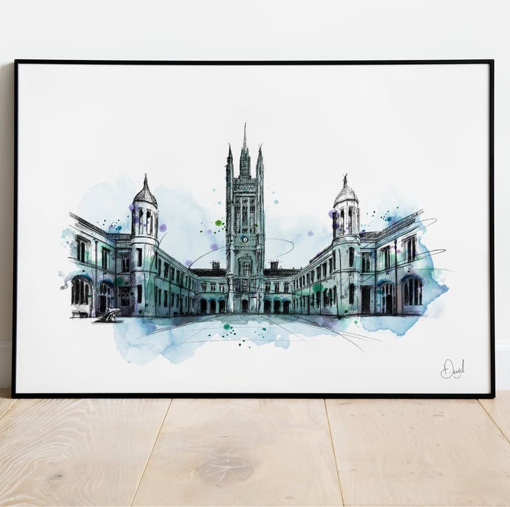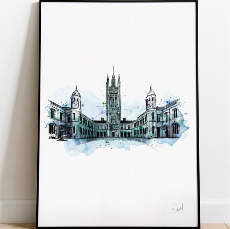 Originally created in pencil, watercolour paint and pen. This illustration of Marischal College in Aberdeen was created as part of my 'Cities' series of Illustrations, which are all available on and my website, david-marston.com.