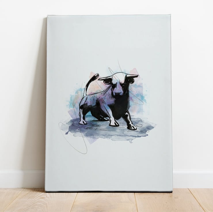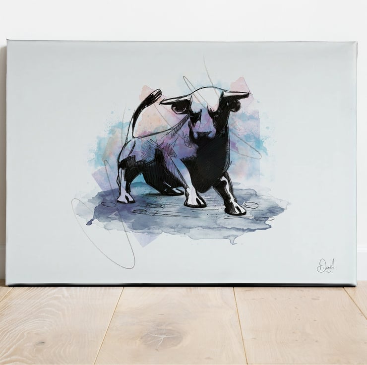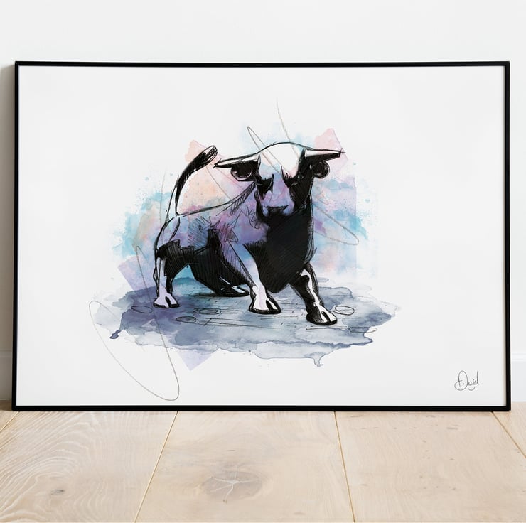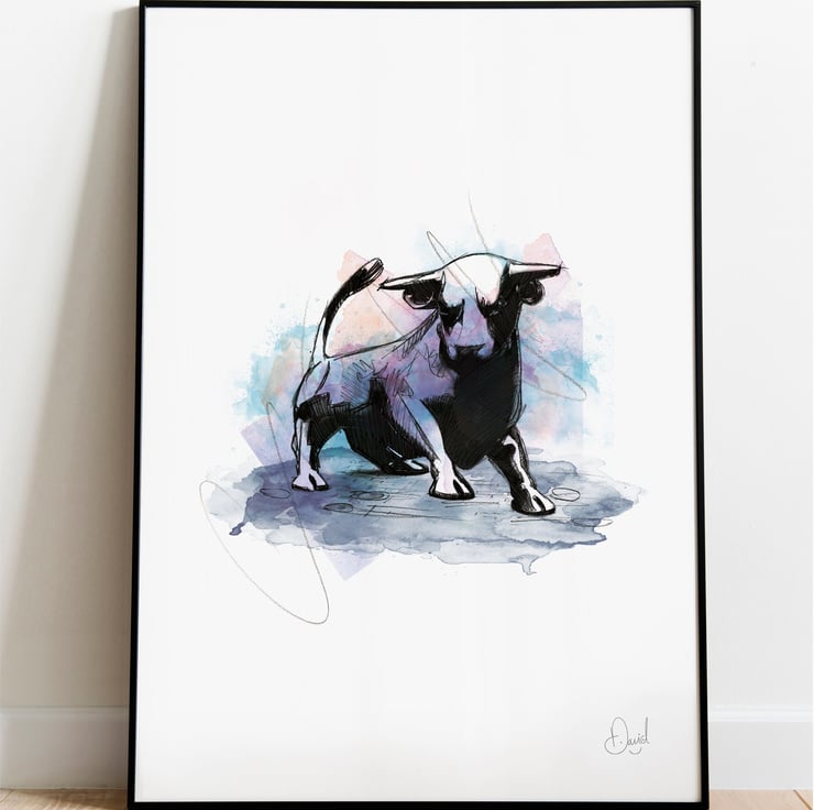 Originally created in pencil, watercolour paint and pen. This illustration of The Bullring Bull Statue in Birmingham was created as part of my 'Cities' series of Illustrations, which are all available on and my website, david-marston.com.