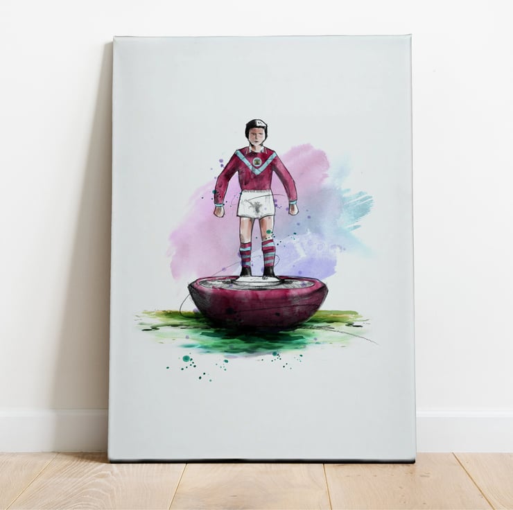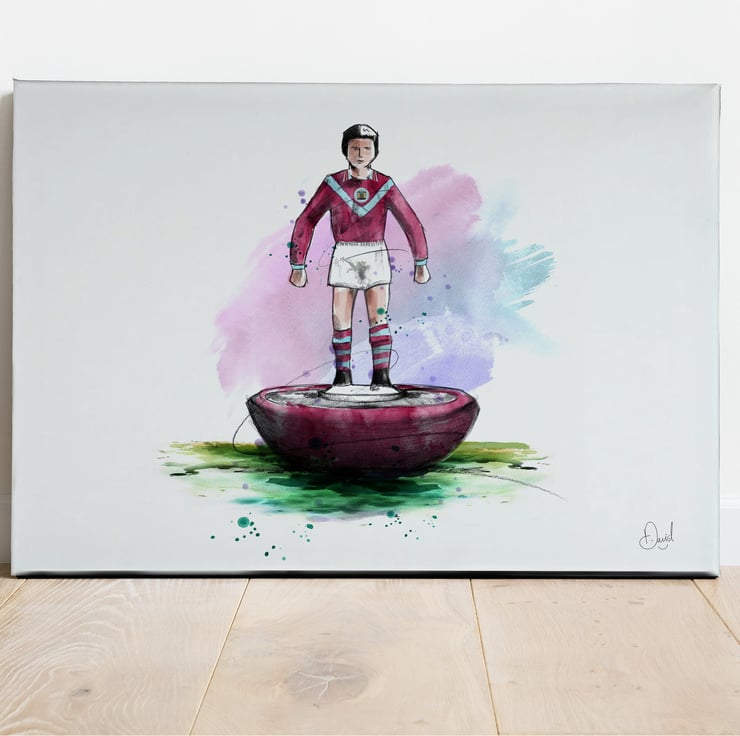 Originally created in pencil, watercolour paint and pen. This illustration of a Classic Burnley Subbuteo figure was created as part of my 'Subbuteo' series of Illustrations, which are all available on and my website, david-marston.com.