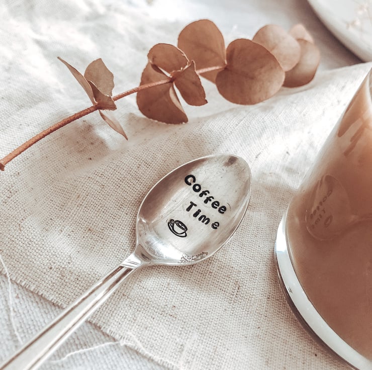 Hand Stamped "Coffee Time" Vintage Teaspoon. Hand stamped cutlery makes the mostquirky & unusual gift or is just a fun treat for yourself.