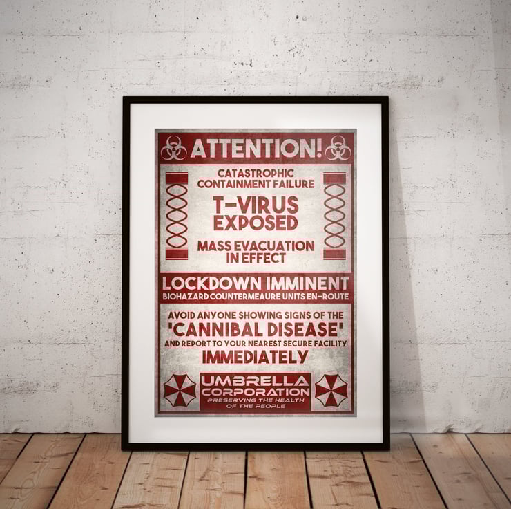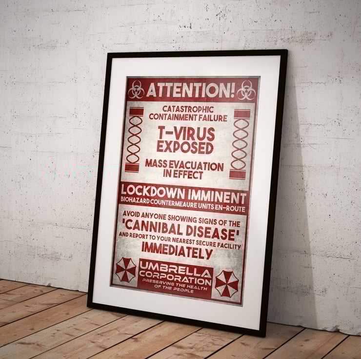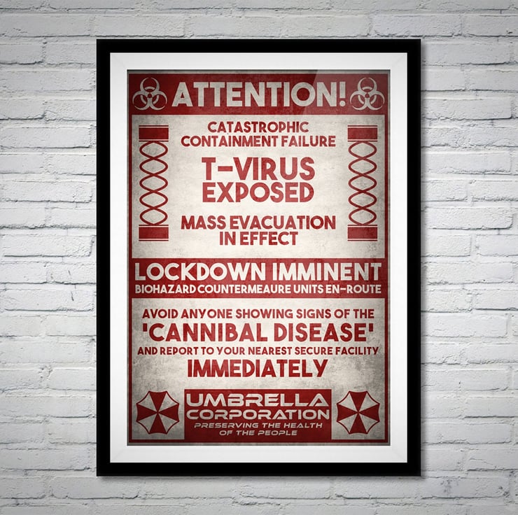 Resident Evil Umbrella Corporation T-Virus Zombie Movie Poster Print - Alternative Wall Art Gift Home Decor