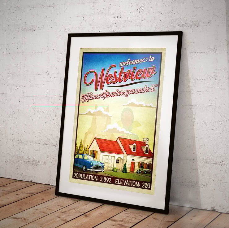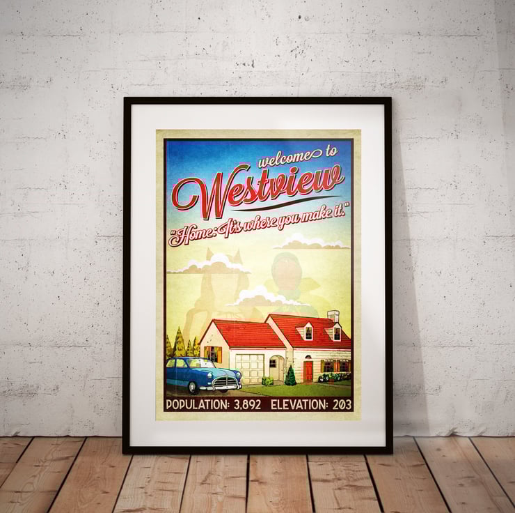 Marvel MCU Westview Wandavision Retro Sign TV Movie Poster Print - Alternative Wall Art Gift Home Decor