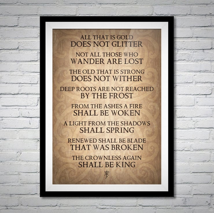 Lord of the Rings All That Is Gold Does Not Glitter Poem Movie Poster Print - Alternative Wall Art Gift LOTR Home Decor