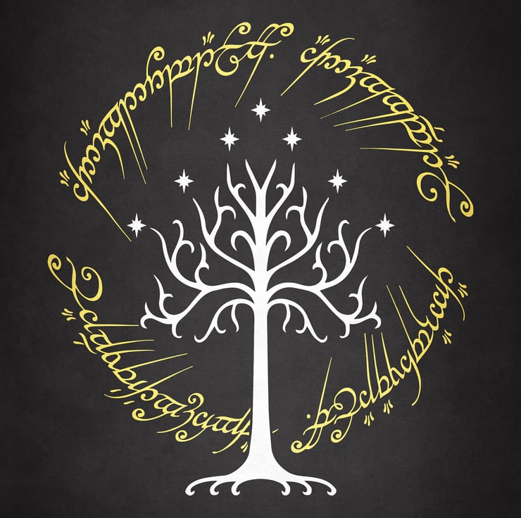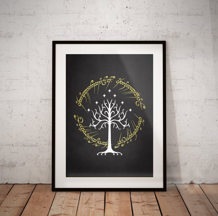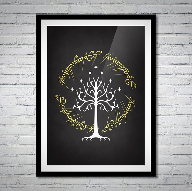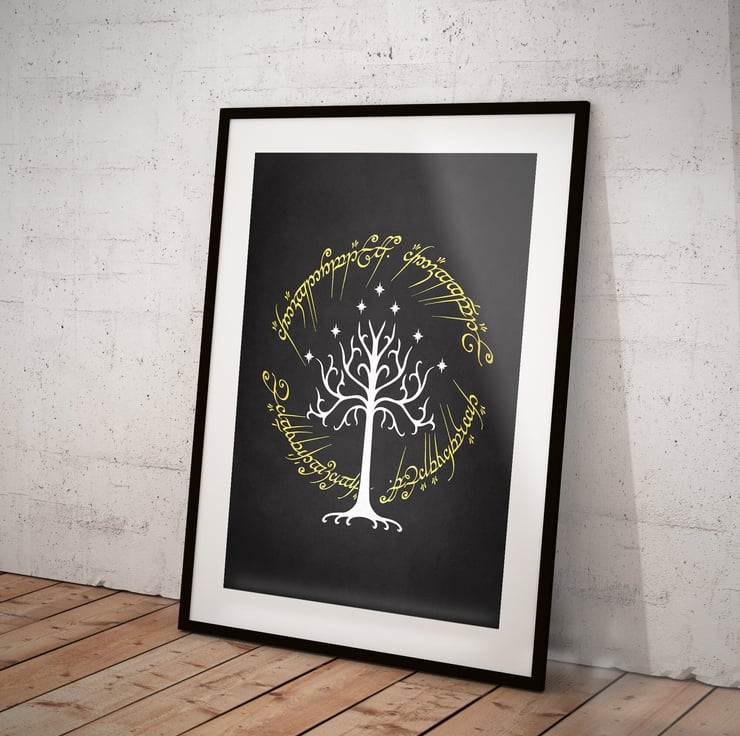 Tree of Gondor Ring Writing Lord of the Rings Movie Poster Print - Alternative Wall Art Gift LOTR Home Decor