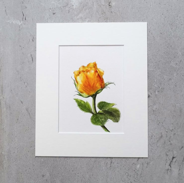 My original 'Apricot Rose' watercolour painting has been mounted in a quality soft white mount and comes with backing board ready for framing. It has been painted using quality paints on to acid free cold pressed watercolour paper and comes with a Certificate of Authenticity.