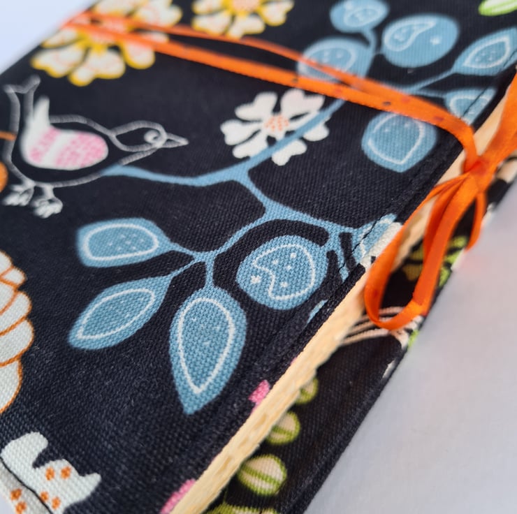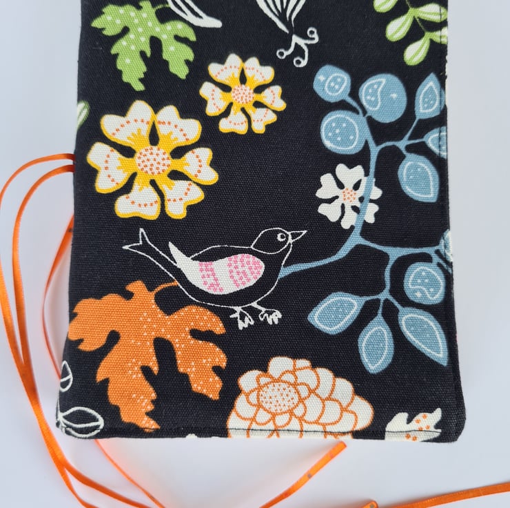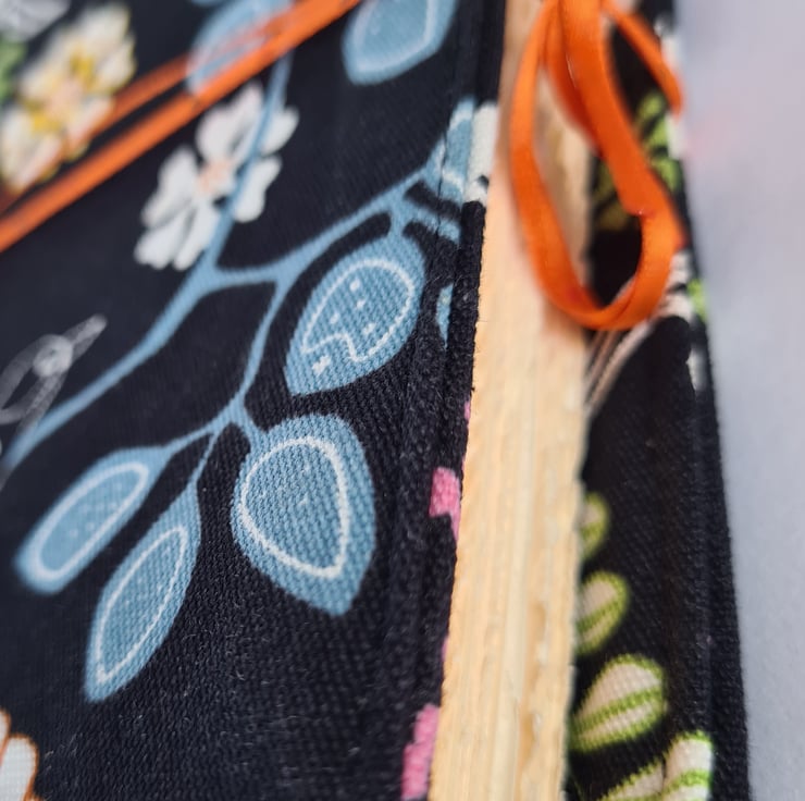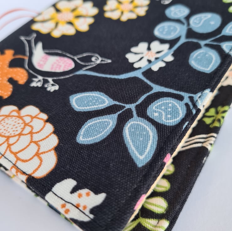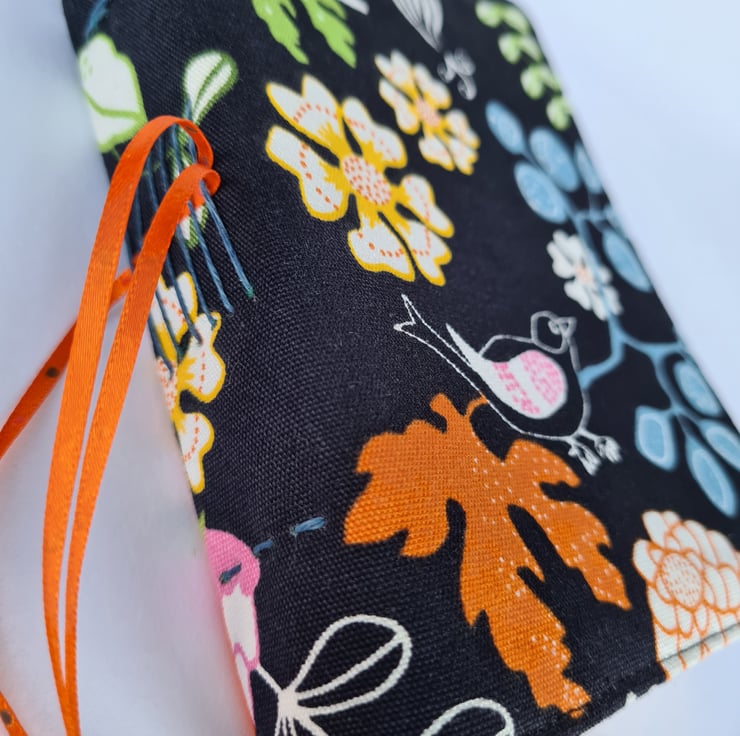 I loved the fabric design, with the black background that really enhances the beauty of the flowers and of the little bird.