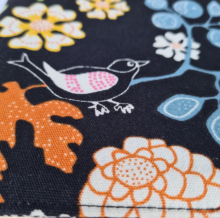 Little bird takes the scene amongst the flowers on this beautiful cotton fabric.