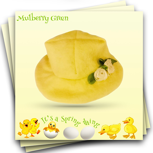 A little lemon tailored felt hat to fit the Mulberry Green dolls. The hat is decorated with two little lemon roses. It matches the lemon tailored coat in my shop.