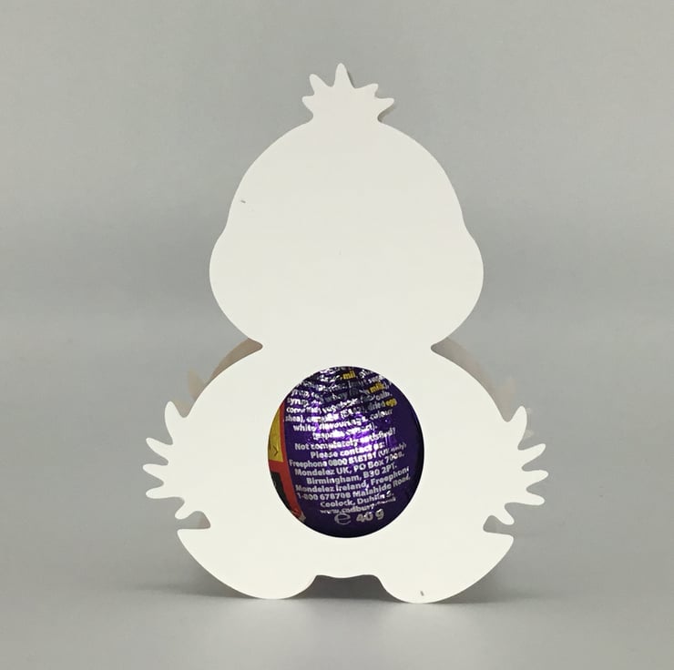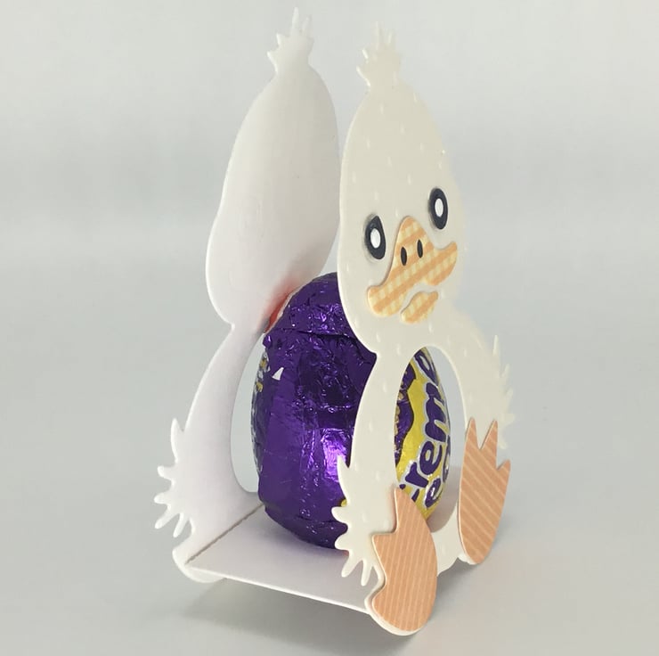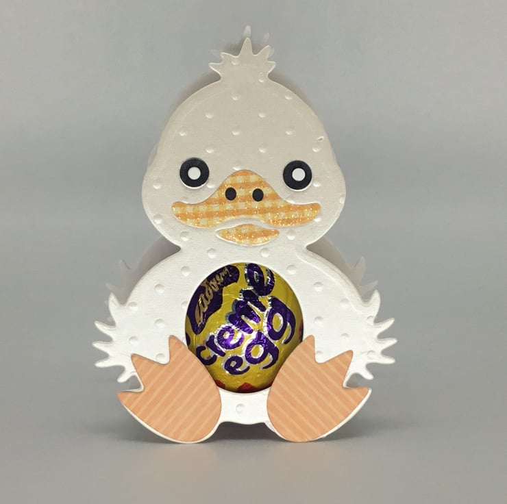 A handmade three dimensional Easter card, designed to hold a creme egg. EGG NOT INCLUDED.