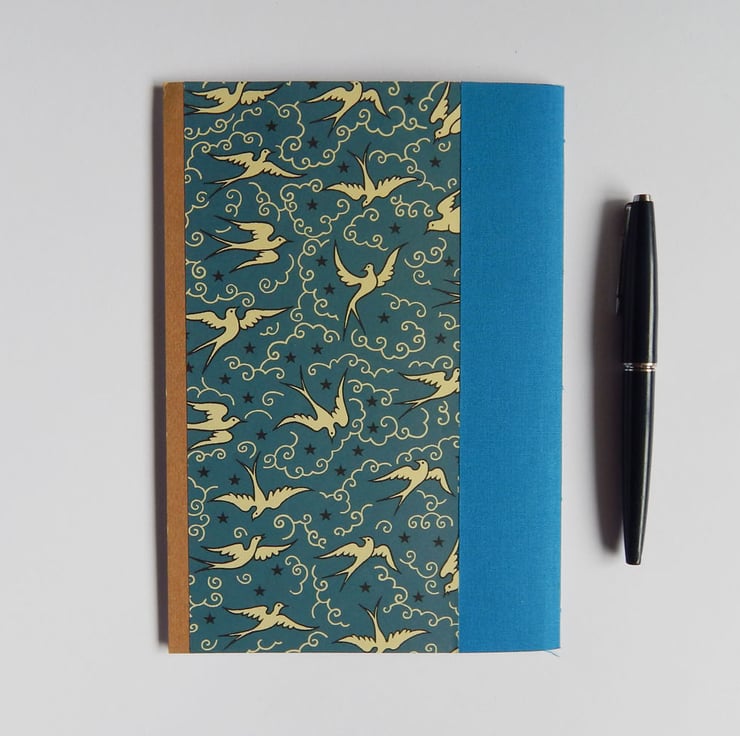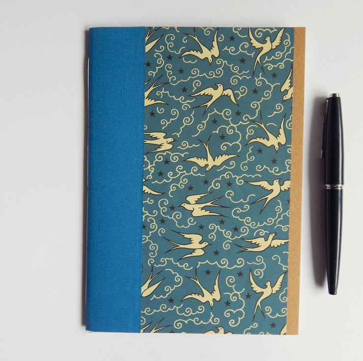 Swallows Notebook, Lined white pages. Replacement notebook A5. Made to Order
