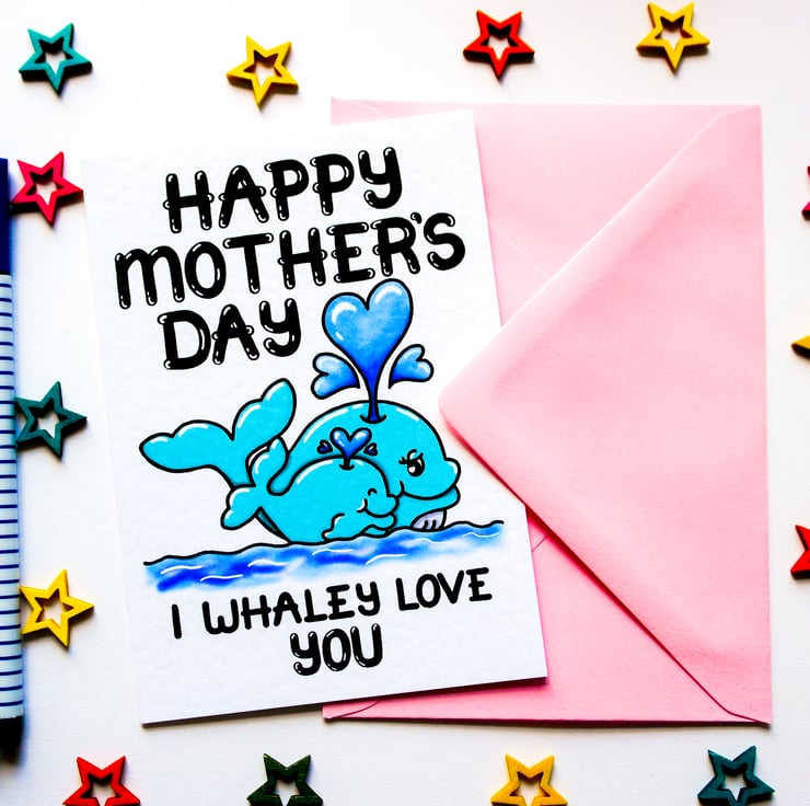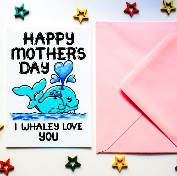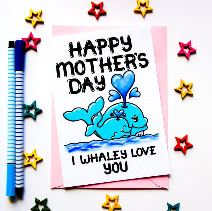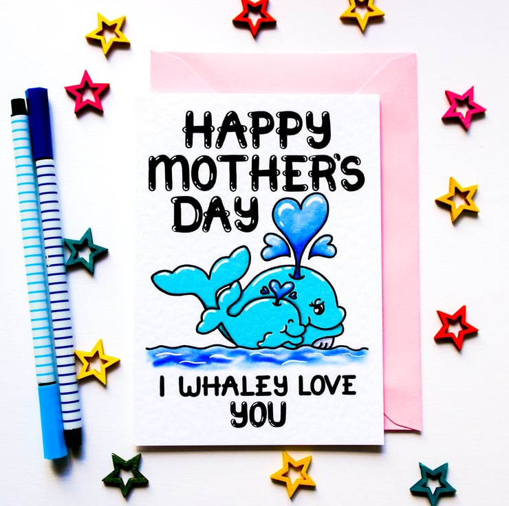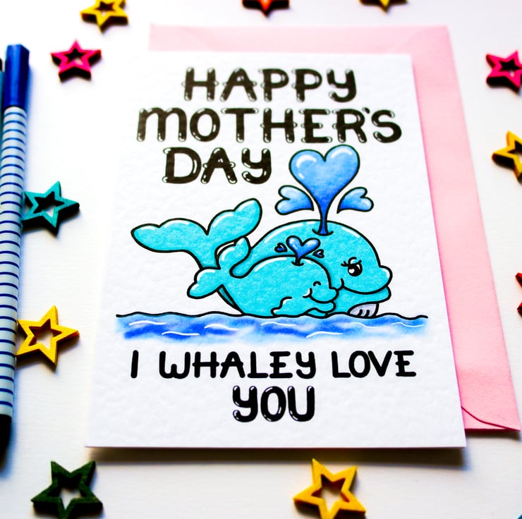 A cute whale pun Mother's day card to send to your Mum, Grandma, Auntie this Mothering Sunday