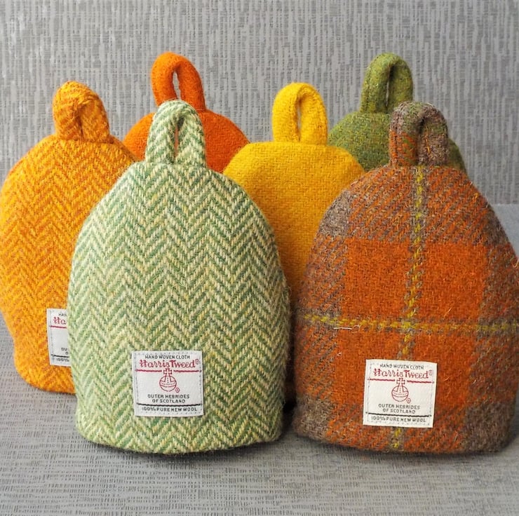 A new and unusual gift. This sunny yellow egg cosy has been handmade from Harris tweed. I've been making tea cosies for many years. Now I've created a scaled-down version to fit your breakfast egg. A lovely addition to your table and a perfect little gift for that person who has everything!