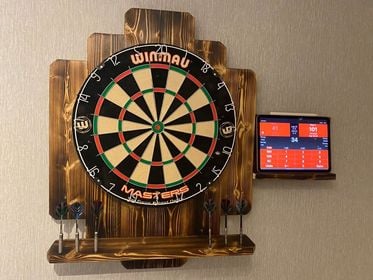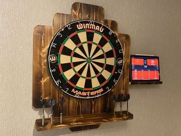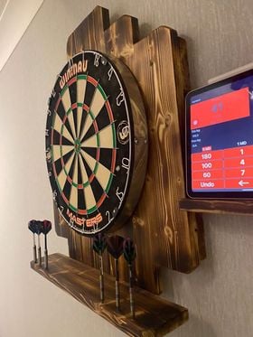 The 'Shanghai' dart board surround is perfect for darts players of any age or skill level. It is made from planed wood that has been burnt to reveal a beautiful grain, and finished in a warm Oak stain. It measures 75cm tall x 60cm wide. It includes a separate detachable tablet/accessory holder which can be placed in a position of your own preference. The surround can be mounted onto a wall with fixtures and fittings included.