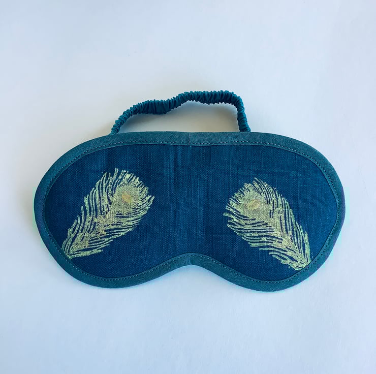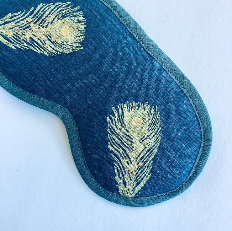 Peacock Feathers Linen Lavender Infused Eye Mask for Relaxation and Meditation