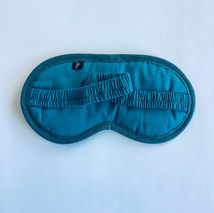 Lavender infused eye sleep mask hand printed and handmade of naturally sourced eco-friendly 100% linen, it has covered elasticated strap and is lined 100% soft cotton and is filled with padding made of 100% cotton. The edges are finished with the bias-binding tape also from 100% cotton fibers. Only natural materials are used and the mask is hand crafted and sewn from high quality breathable linen lined with one layer of soft cotton for comfort against your skin.