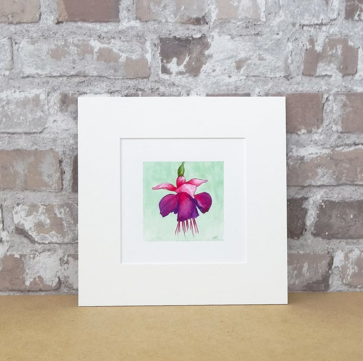 My original watercolour miniature 'Fuchsia' painting has been painted on acid free 300gsm watercolour paper using quality watercolour paints and has been signed on the reverse. It comes with a Certificate of Authenticity.