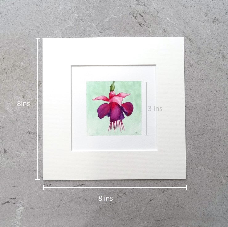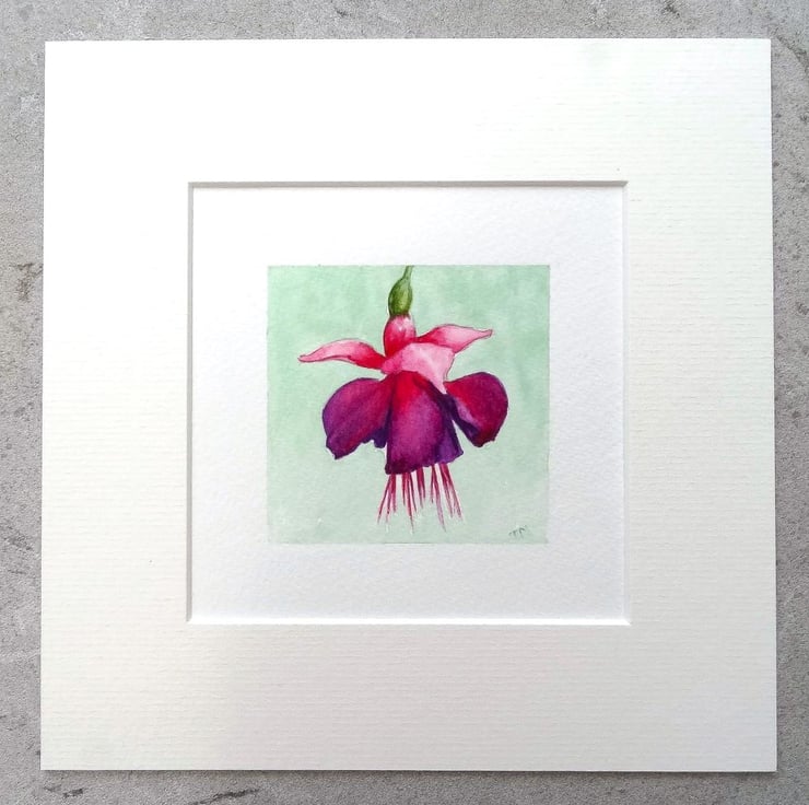 My original watercolour miniature 'Fuchsia' painting has been painted on acid free 300gsm watercolour paper using quality watercolour paints and has been signed on the reverse. It comes with a Certificate of Authenticity.