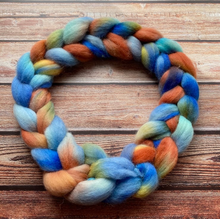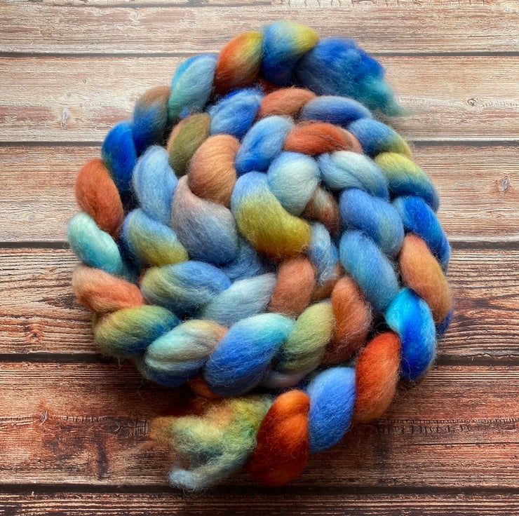 Approximately 100g variegated hand dyed by me as shown.