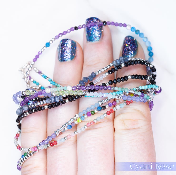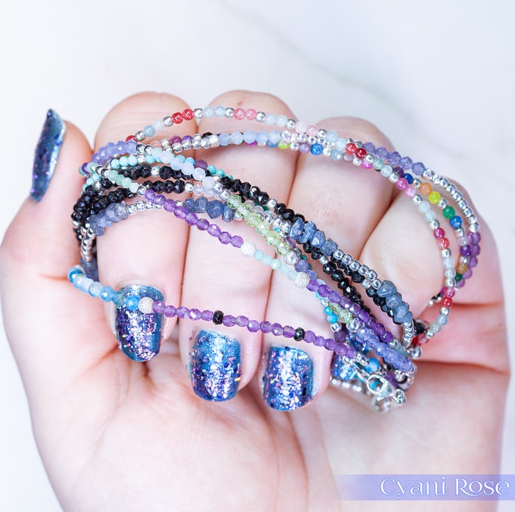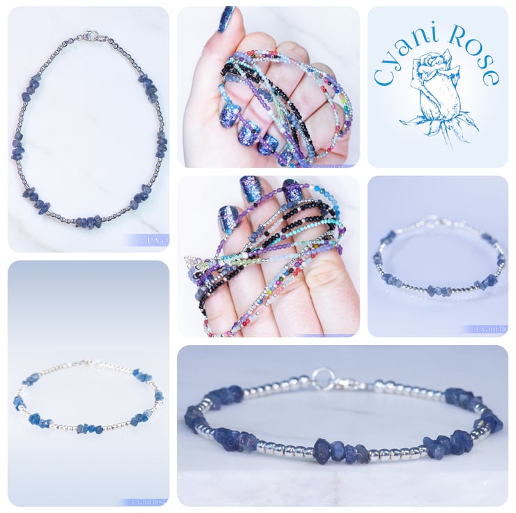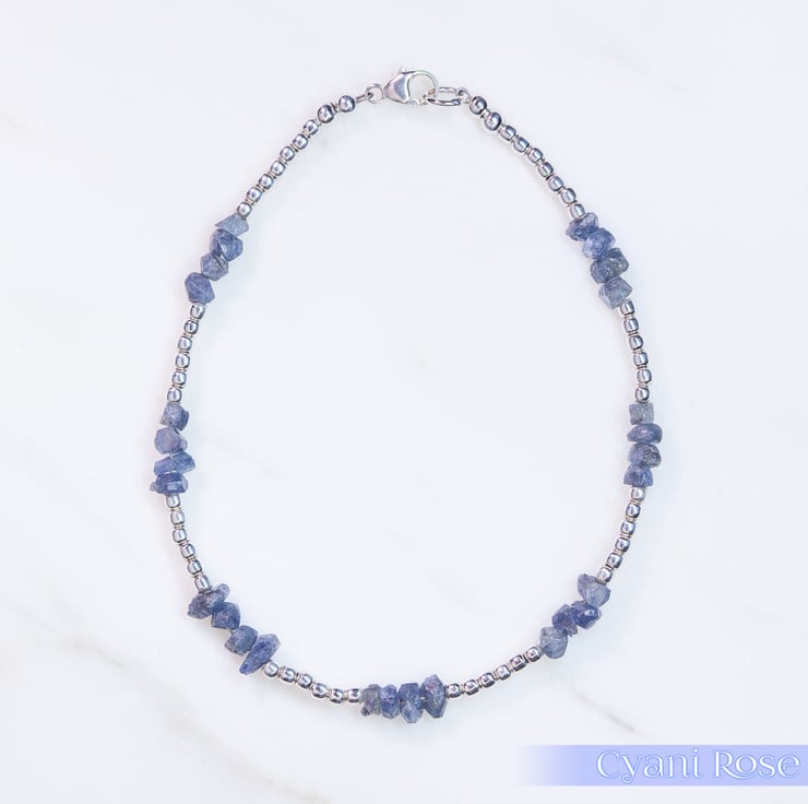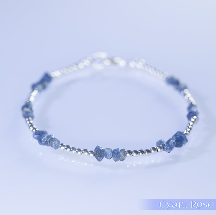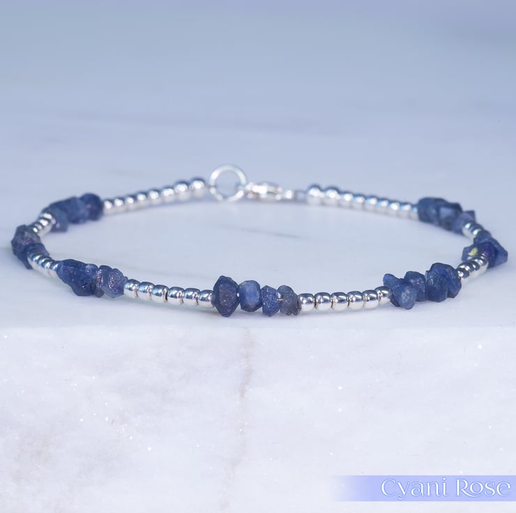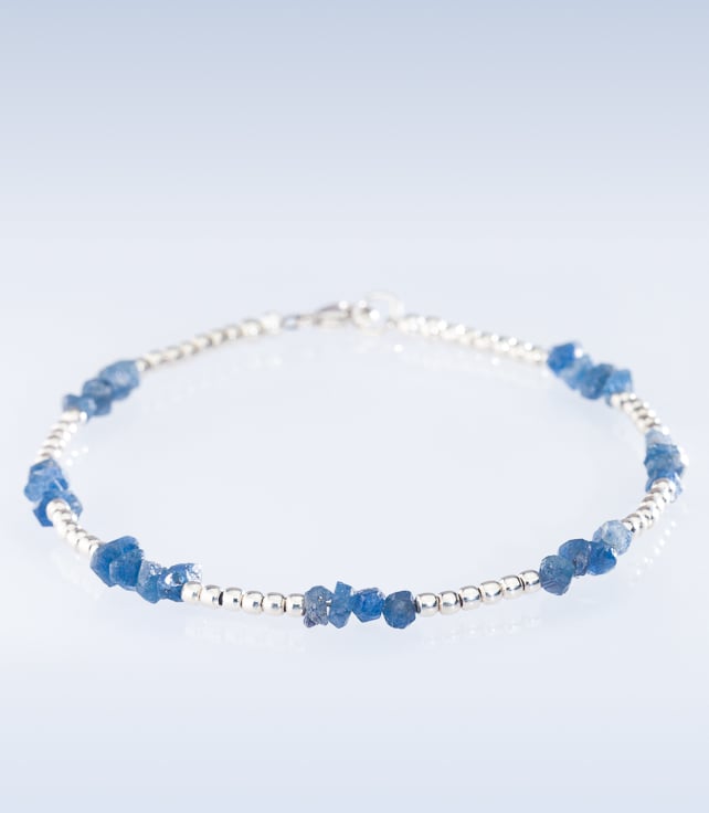 This handmade bracelet has 4mm blue sapphire chip beads from Madagascar and sterling silver 2mm beads and clasp/jumpring.